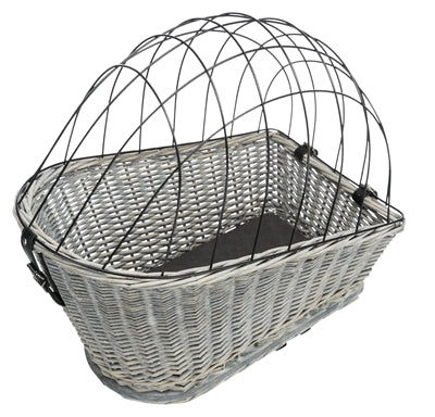 Met de Trixie Fietsmand Bagagedrager Met Rooster Grijs 55X35X49 cm gaat jouw hond comfortabel en veilig met jou mee op al jouw fietstochten. Deze leuke rieten mand is gemaakt van gevlochten wilgentenen in een frisse, zomerse lichtgrijze kleur. De mand is voorzien van een rooster om te voorkomen dat de hond onderweg uit de mand kan springen. De mand kan op bagagedragers met een breedte van 10,5 - 14,5 cm bevestigd worden, zodat je jouw stuur vrij houdt om comfortabel te sturen. Het bijgeleverde kussen met velours-overtrek zorgt voor een comfortabele rit voor jouw dier.