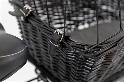 Met de Trixie Fietsmand Met Draadkoepel Achterop Zwart 35X49X55 cm gaat jouw hond comfortabel en veilig met jou mee op al jouw fietstochten. Deze leuke mand is gemaakt van gevlochten wilgentakken in een frisse, lichtgrijze kleur. De mand is voorzien van een rooster om te voorkomen dat de hond onderweg uit de mand kan springen. De mand is te bevestigen op de bagagedrager en bevat een kussen met grijs velours overtrek.