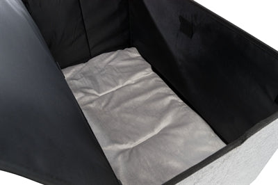 Het Trixie Kattenhuis Kimy Lichtgrijs van 72 x 40 x 40 cm is een leuk relax-huis voor binnen, met kussen en opbergvak. Het ideale eigen plekje voor jouw kat of kleine hond! Deze leuke Relax-Iglo is een rechthoekig huisje met aan één kant een ingang. Het huisje is gemaakt van geweven stof met een leuke afbeelding van het silhouet van een hond aan de zijkant. Het dak van de Iglo is afneembaar: hieronder vind je een opbergvak, waarin je bijvoorbeeld de favoriete speeltjes van jouw dier kunt opbergen. Ook kun je ervoor kiezen om het vak, dat vastzit met klittenband, eruit te halen om zo van bovenaf extra toegang te hebben tot de kat of hond. Het huisje komt met een heerlijk comfortabel, wendbaar kussen met pluche bekleding. Je kunt het kussen wassen in de wasmachine op 40 graden Celcius.