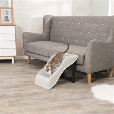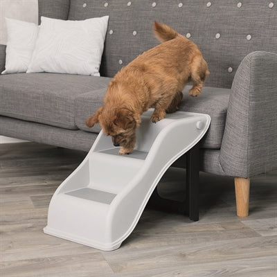 De Trixie Trap Lichtgrijs 54X34X39 cm is een inklapbare kunststof trap met slipvaste voetjes, om de hond binnen en buiten de auto, bank of het bed op te helpen. Is jouw hond slecht ter been of te klein om bepaalde plekken te bereiken waar hij of zij graag komt? Help jouw hond dan met deze handige trap van Trixie! Deze trap is speciaal gemaakt om kleine, oudere of honden met lichamelijke klachten te helpen hoger gelegen plekken te bereiken. De trap is gemaakt van kunststof en makkelijk afneembaar, waardoor je hem binnen voor het bed of de bank kunt gebruiken, maar buiten ook voor hoger of lager gelegen delen van de tuin of zelfs de auto. De standaard van de trap is inklapbaar zodat hij ruimtebesparend is op te bergen en de treden zijn bekleed met antislip TPR-lookvlakken. Ook is de trap voorzien van rubberen antislip voetjes zodat hij niet verschuift tijdens het gebruik en jouw dier zo veilig en zelfverzekerd de trap op kan.